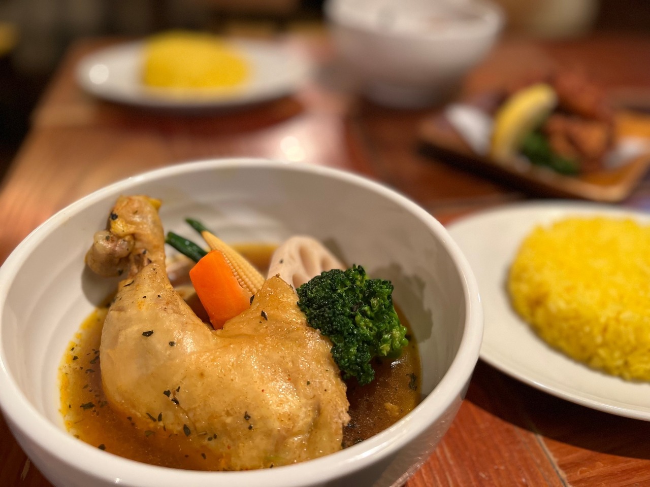 【当店1番人気、定番の『骨付きチキンスープカレー』】